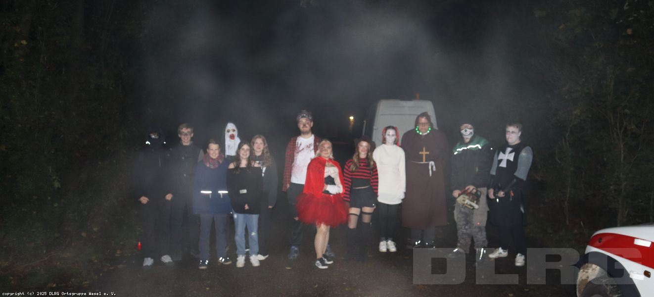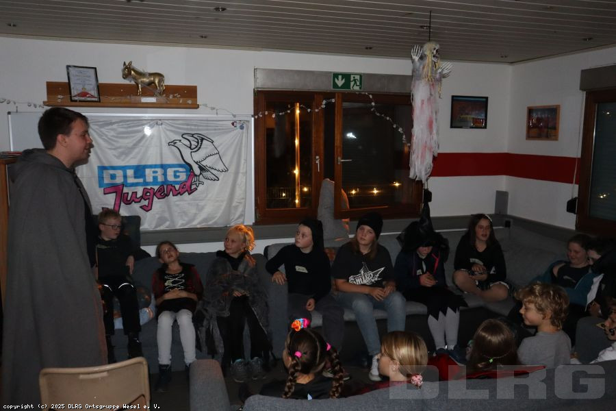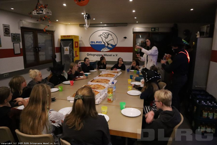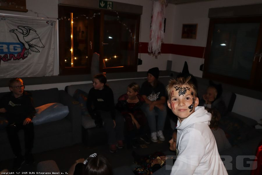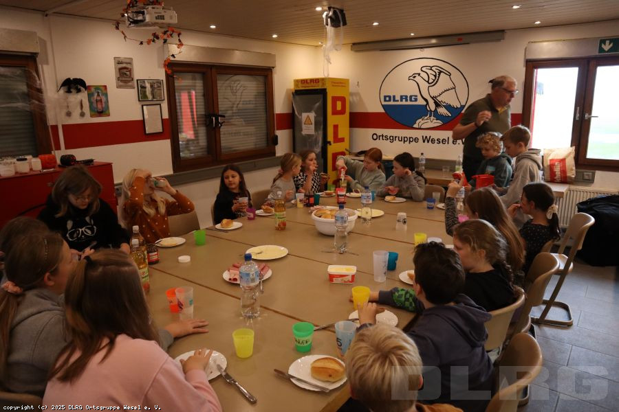Am 31.10.2024 veranstalteten wir an unserer DLRG-Wachstation am Auesee eine Halloweenübernachtung. 17 Kinder im Alter von 9 bis 12 Jahren starteten zusammen mit den Betreuern*innen und Jugendleiter*innen mit Spiel und Spaß in den schaurig-lustigen Abend: Auf dem Programm standen zunächst lustige Kennenlernspiele, Pizza, spannende Werwolfrunden sowie eine Bastelaktion.