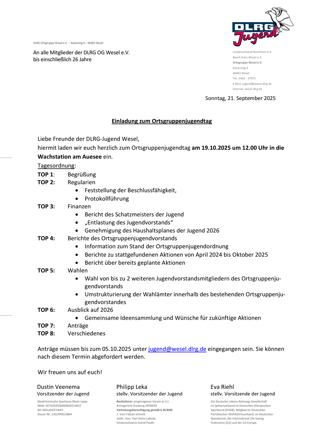 Vollständige Liste der Ansprechpartner der DLRG-Jugend Ortsgruppe Wesel findest du hier .